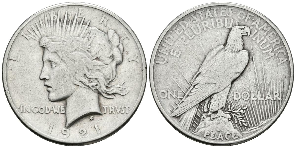 ESTADOS UNIDOS. Dollar. 1921. Km#150. Ar. 26,49g. MBC-. Escasa.