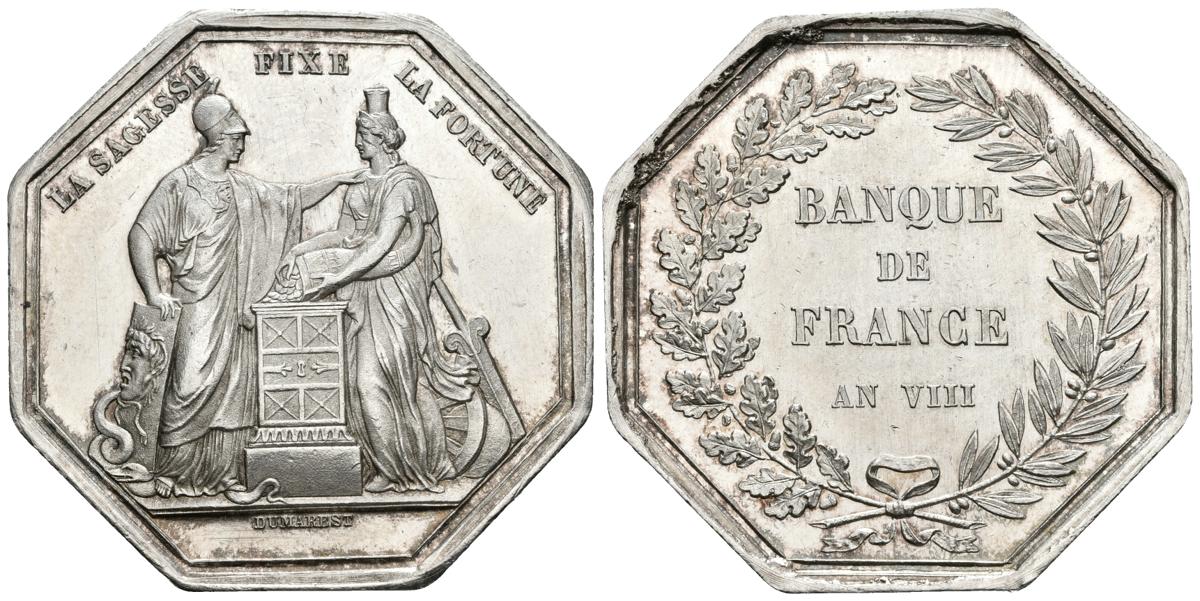 FRANCIA. Napoleón como cónsul. Jetón. 1799-1804. Banco de Francia un VII. Grabador: Dumarest. Bramsen 29; Feuardent 4951. Ar. 25,30g. Leves marquitas. EBC.