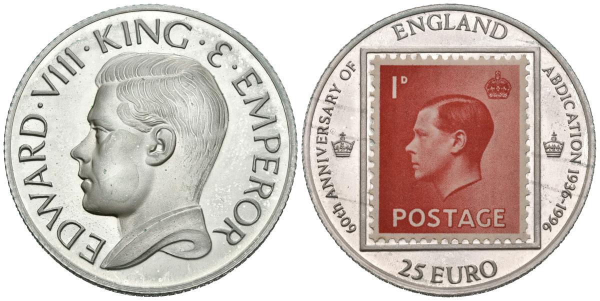 GRAN BRETAÑA. 25 Euro. 1996. EDUARDO VII (tirada: 1500 ejemplares). Ar. 24,15g. Pátina verde. PROOF. Sin estuche oficial.