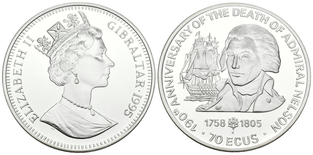 GRAN BRETAÑA. 70 Ecus. 1995. 190 ANIVERSARIO DE LA MUERTE DEL ALMIRANTE NELSON. Ar. 134,38g. PROOF. Sin estuche oficial.