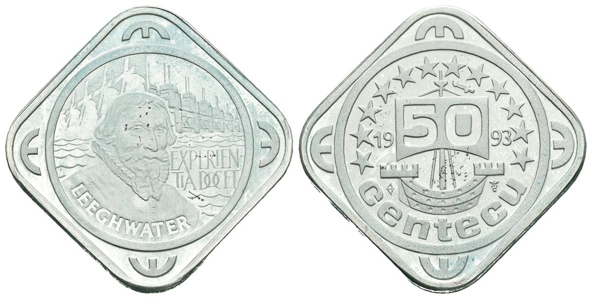 HOLANDA. 50 Centecu. 1993. LEEGHWATER (tirada: 1500 ejemplares). Ar. 7,70g. Pátina verde. PROOF. Sin estuche oficial.