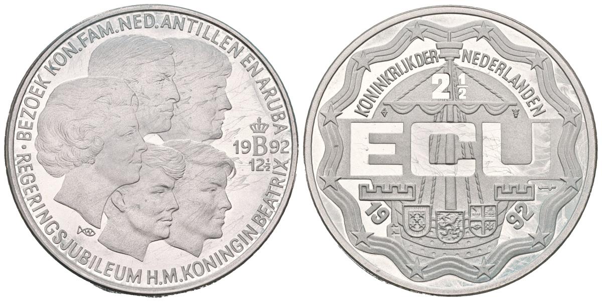 HOLANDA. 2 1/2 Ecu. 1992. FAMILIA REAL (tirada: 1500 ejemplares). Ar. 18,51g. PROOF. Sin estuche oficial.