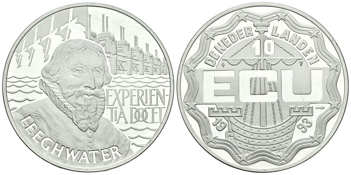 HOLANDA. 10 Ecu. 1993. LEEGHWATER (tirada: 1500 ejemplares). Ar. 22,47g. PROOF. Sin estuche oficial.