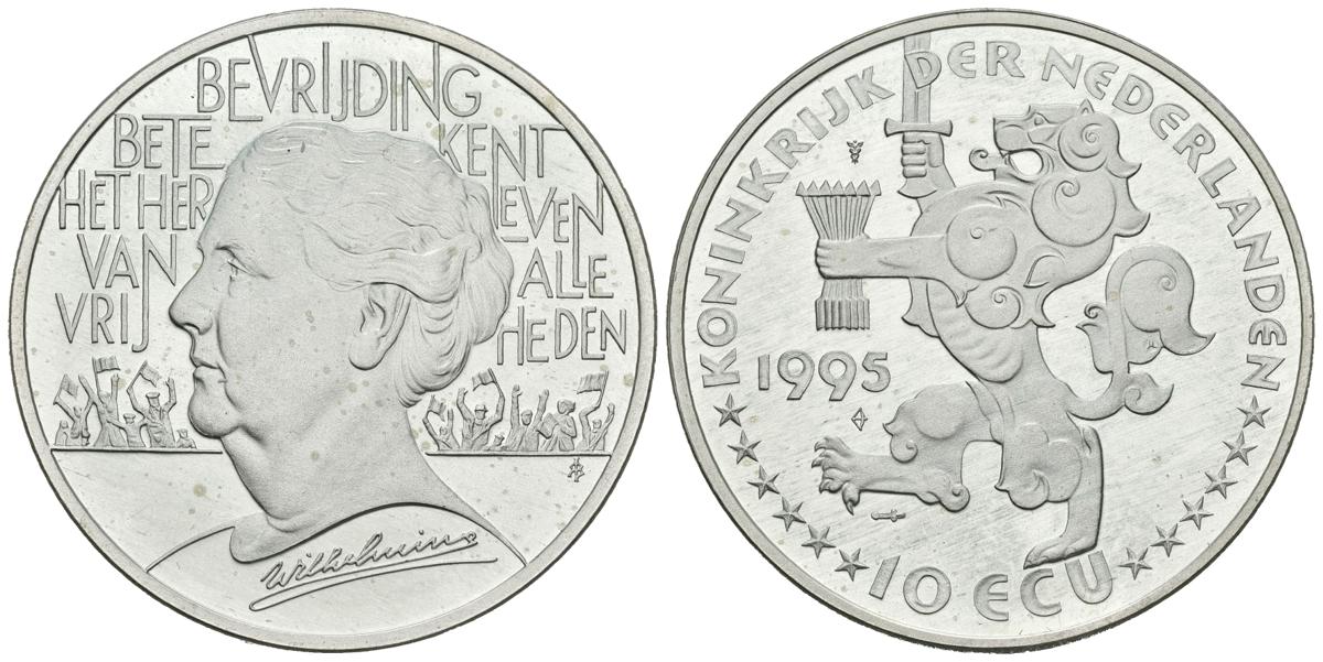HOLANDA. 10 Ecu. 1995. GUILLERMINA (tirada: 1500 ejemplares). Ar. 25,00g. PROOF. Sin estuche oficial.