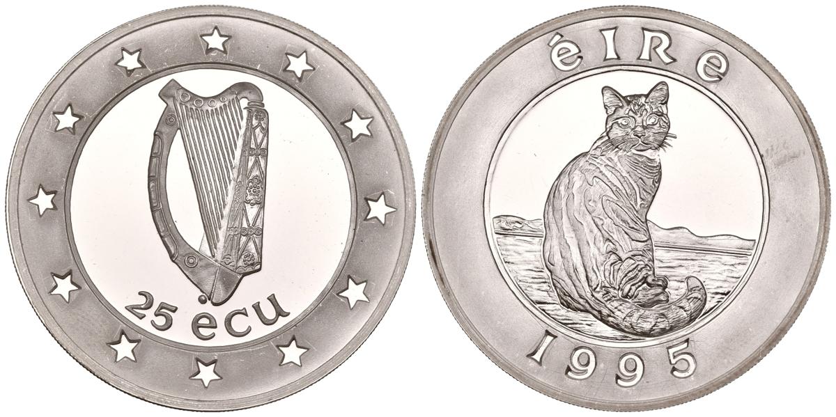 IRLANDA. 25 Ecu. 1995. GATO IRLANDES (tirada: 1000 ejemplares). Ar. 41,87g. PROOF. Sin estuche oficial.