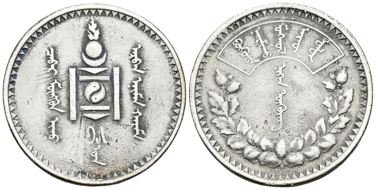 MONGOLIA. 1 Tugrik. AH 15 (1925). Km#8. Ar. 14,96g. MBC-.
