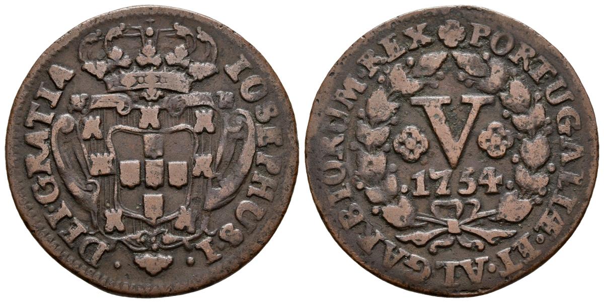 PORTUGAL. José I. 5 Reis. 1754 D. Gomes 05.07. Ae. 5,79g. MBC-.
