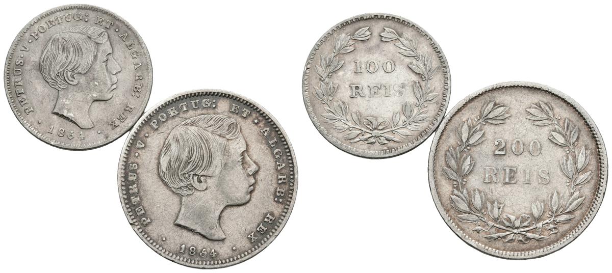 PORTUGAL. Pedro V. 100 y 200 Reis. 1854. Km#490. Ar. MBC.