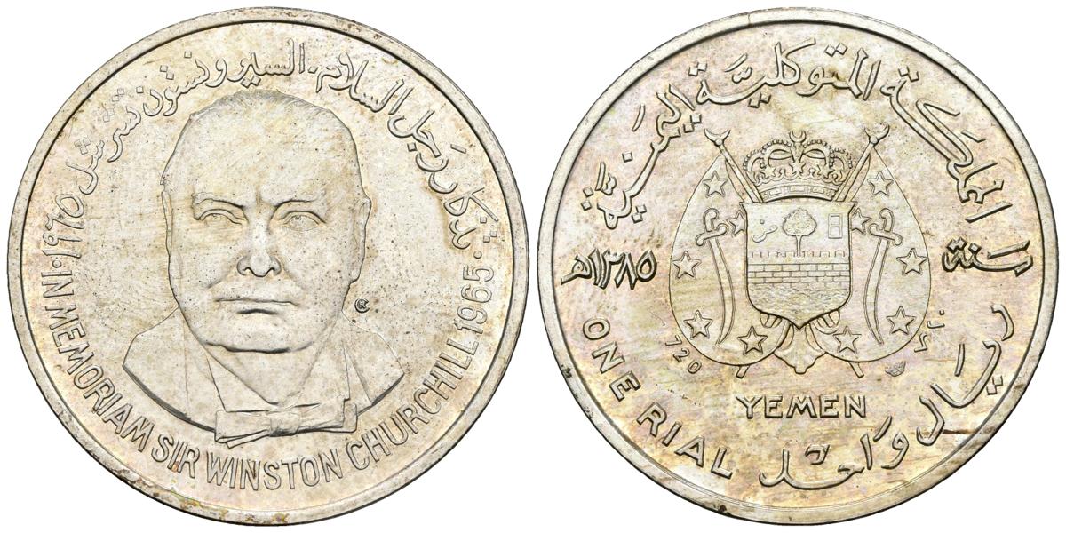 YEMEN. 1 Rial. 1965. Churchill. Km#5. Ar. 25,01g. Tono. SC-.