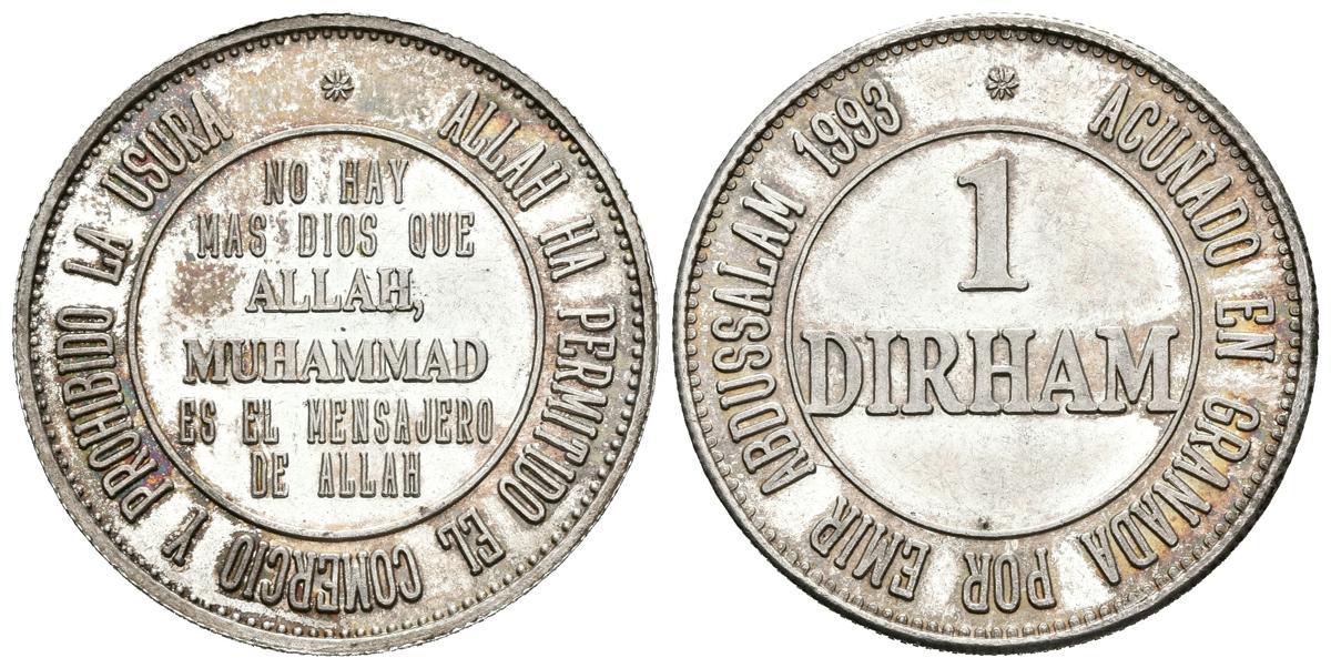 GRANADA. 1 Dirham. Acuñado en Granada por el Emir Abdussalam 1993. Ar. 2,95g. SC-. Escasa.