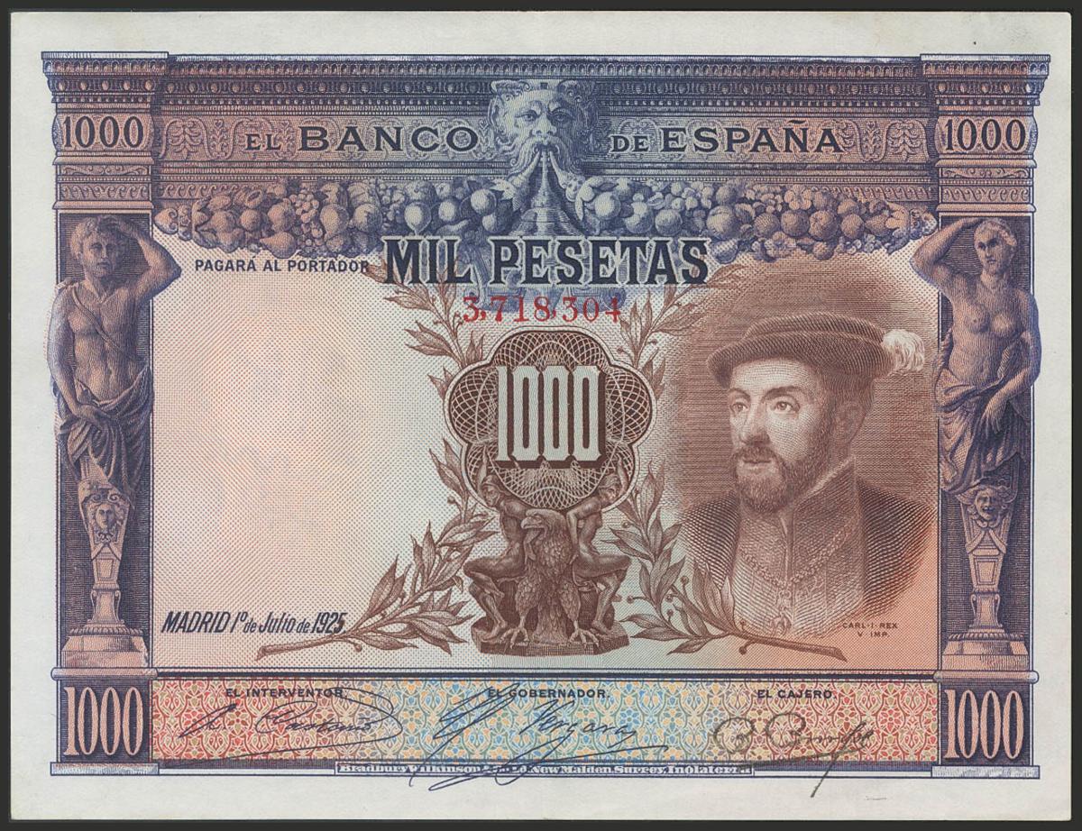 1000 Pesetas. 1 de Julio de 1925. Sin serie. (Edifil 2017: 351). Apresto original. Inusual. EBC.