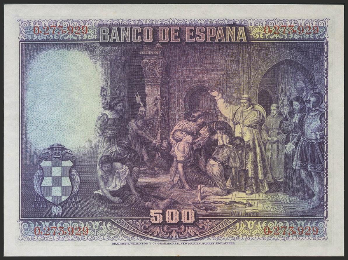 500 Pesetas. 15 de Agosto de 1928. Sin serie. Invisible doblez vertical. (Edifil 2017: 356). EBC+.
