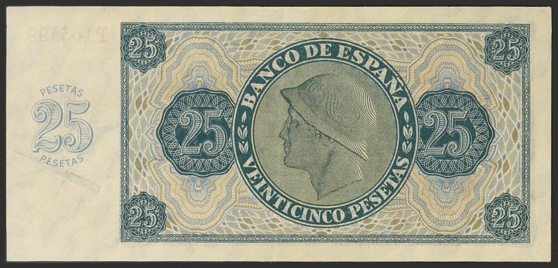 25 Pesetas. 21 de Noviembre de 1936. Banco de España, Burgos. Serie P. Invisible doblez horizontal. Apresto original. (Edifil 2017: 419). EBC.