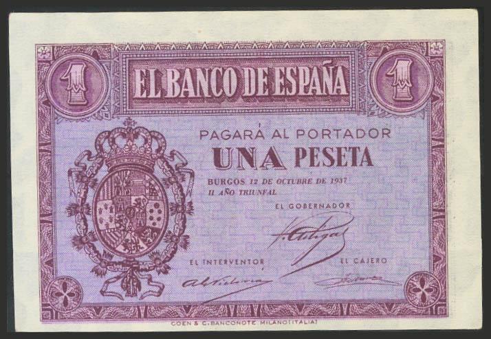 1 Peseta. 12 de Octubre de 1937. Serie E. (Edifil 2017: 425a). SC-.