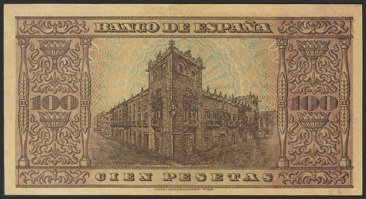 100 Pesetas. 20 de Mayo de 1938. Banco de España, Burgos. Serie F. Invisible doblez vertical. (Edifil 2017: 432a). EBC.