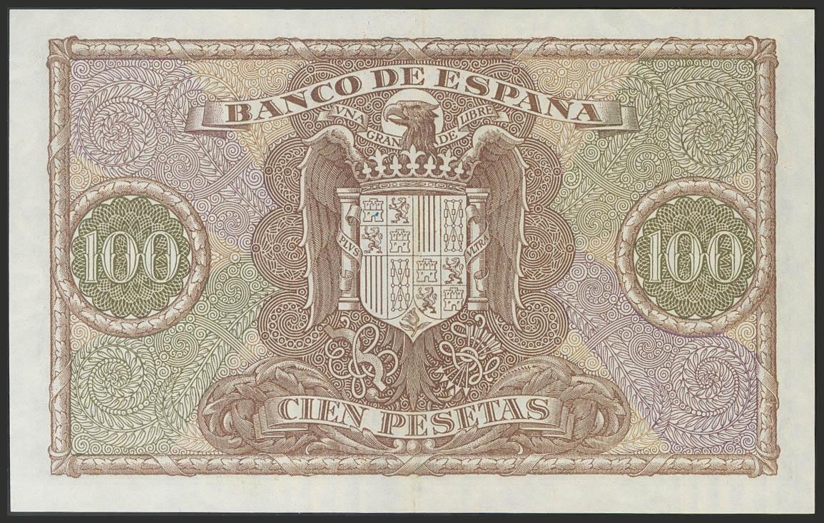 100 Pesetas. 9 de Enero de 1940. Serie B. (Edifil 2017: 438). Conserva gran parte del apresto original. EBC-.