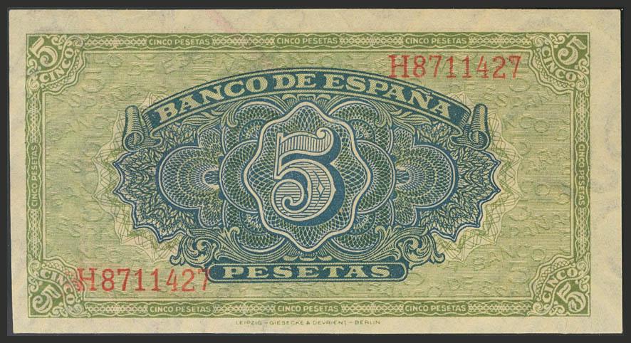 5 Pesetas. 4 de Septiembre de 1940. Serie H. (Edifil 2017: 443a). EBC+.