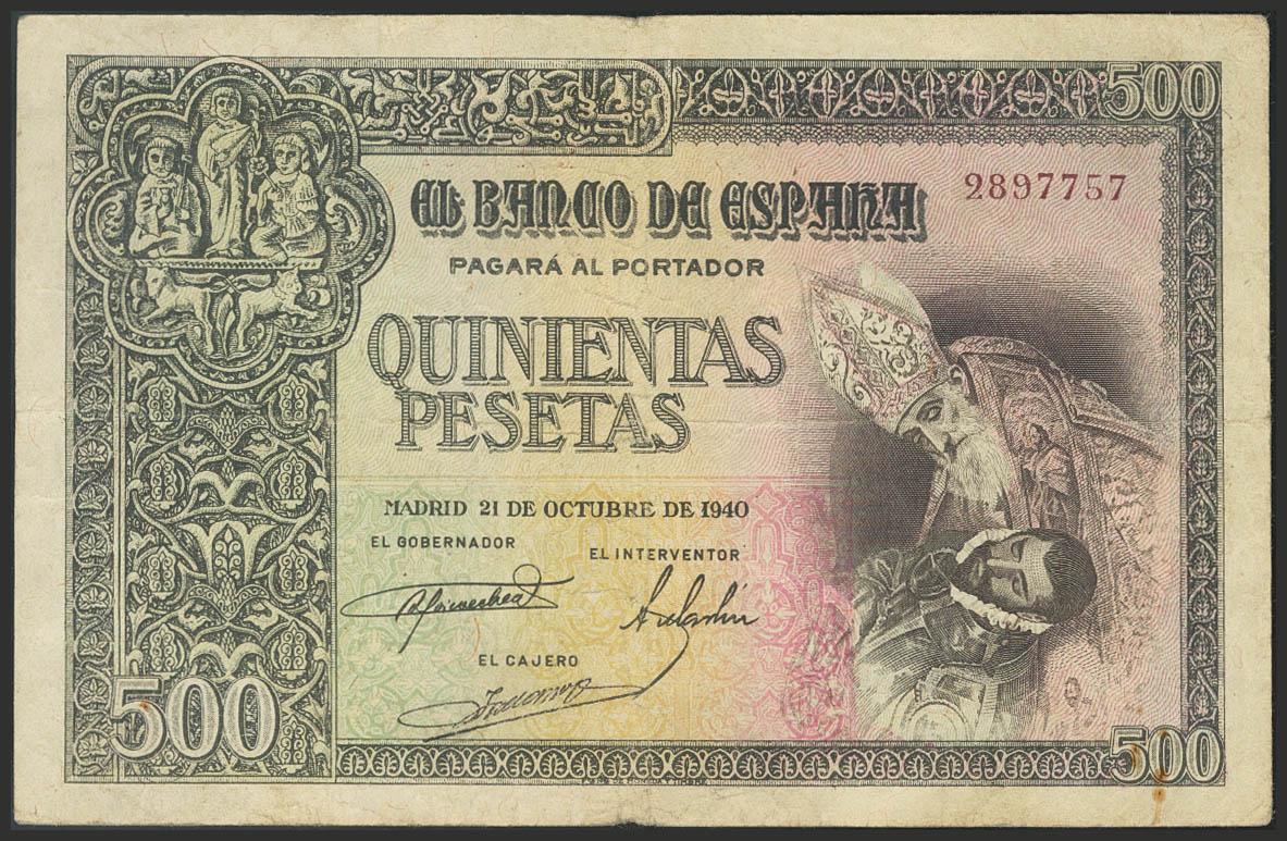 500 Pesetas. 21 de Octubre de 1940. Sin serie. (Edifil 2017: 444). MBC.
