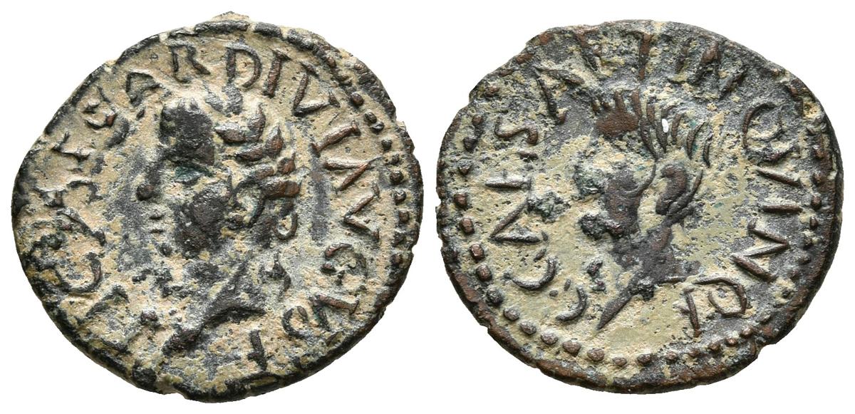 CARTAGONOVA. Sextante. Epoca de Tiberio. 14-36 d.C. Cartagena (Murcia). A/ Cabeza laureada de Tiberio a izquierda. TI. CAESAR DIVI. AVGVS. F. R/ Cabeza de Calígula a izquierda. C. CAESAR TI. N. QVIN. IN. V. I. N. K. FAB-610. Ae. 2,24g. EBC-.