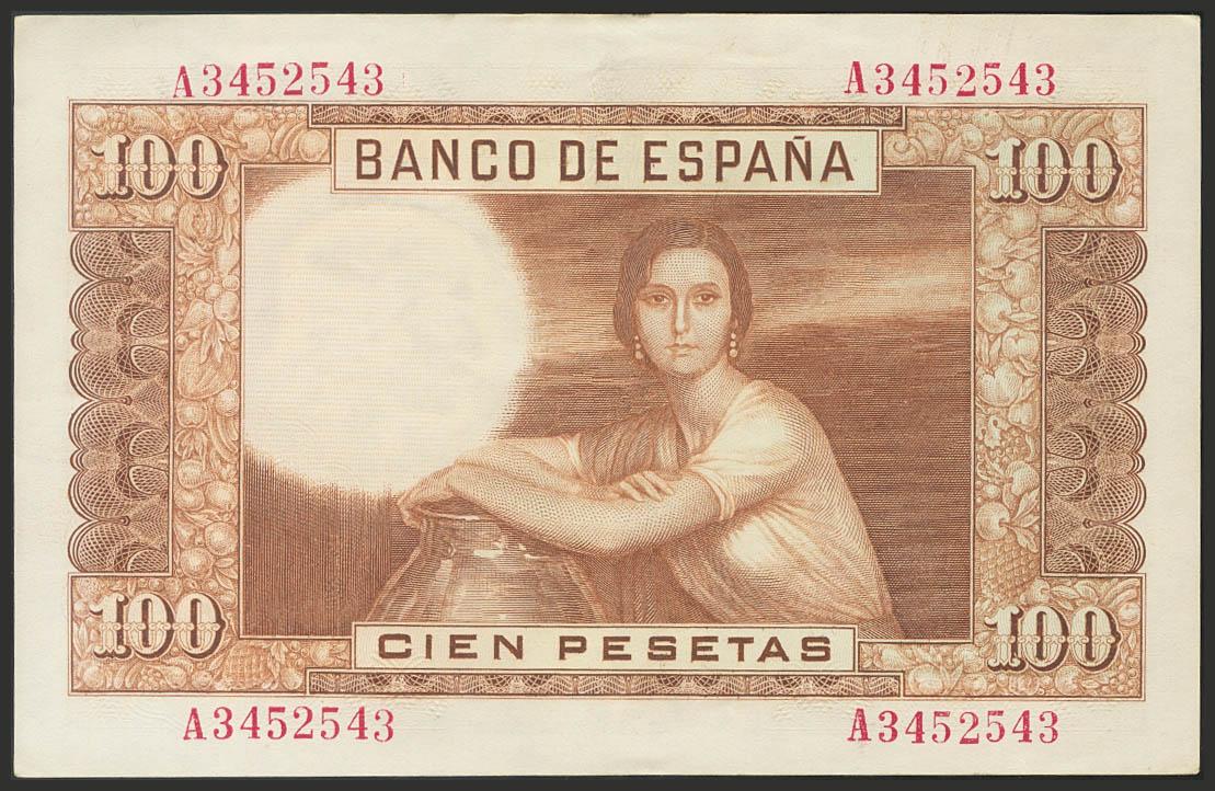 100 Pesetas. 7 de Abril de 1953. Serie A. (Edifil 2017: 464a). Apresto original. EBC-.