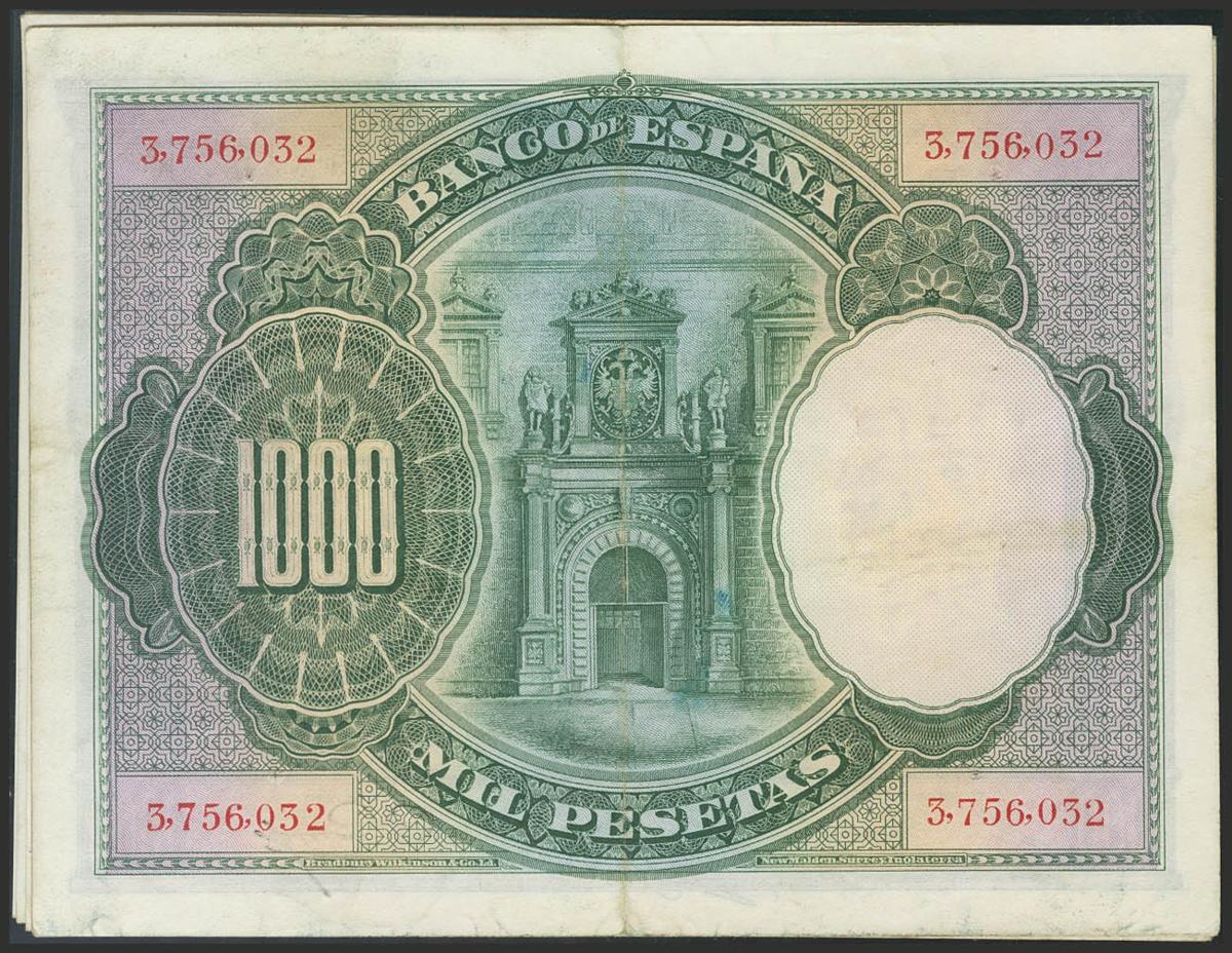 Conjunto de 10 billetes de 1000 Pesetas de la emisión del 1 de Julio de 1925. Serie posterior al 3.646.000. (Edifil 2017: 351). MBC/BC.