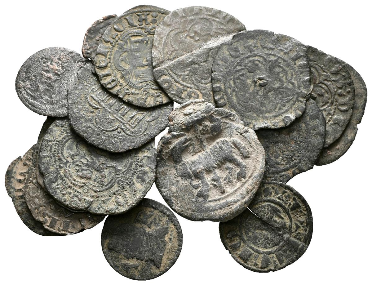 EPOCA MEDIEVAL. Lote compuesto por 17 monedas medievales. Conteniendo Cornado de Sancho IV Coruña, Blancas de Erique III (Burgos y Sevilla), Blancas de Juan II (Coruña y Toledo), Pepiones, dinero y precinto mercantil con el Agnus Dei. A EXAMINAR. BC/MBC+.