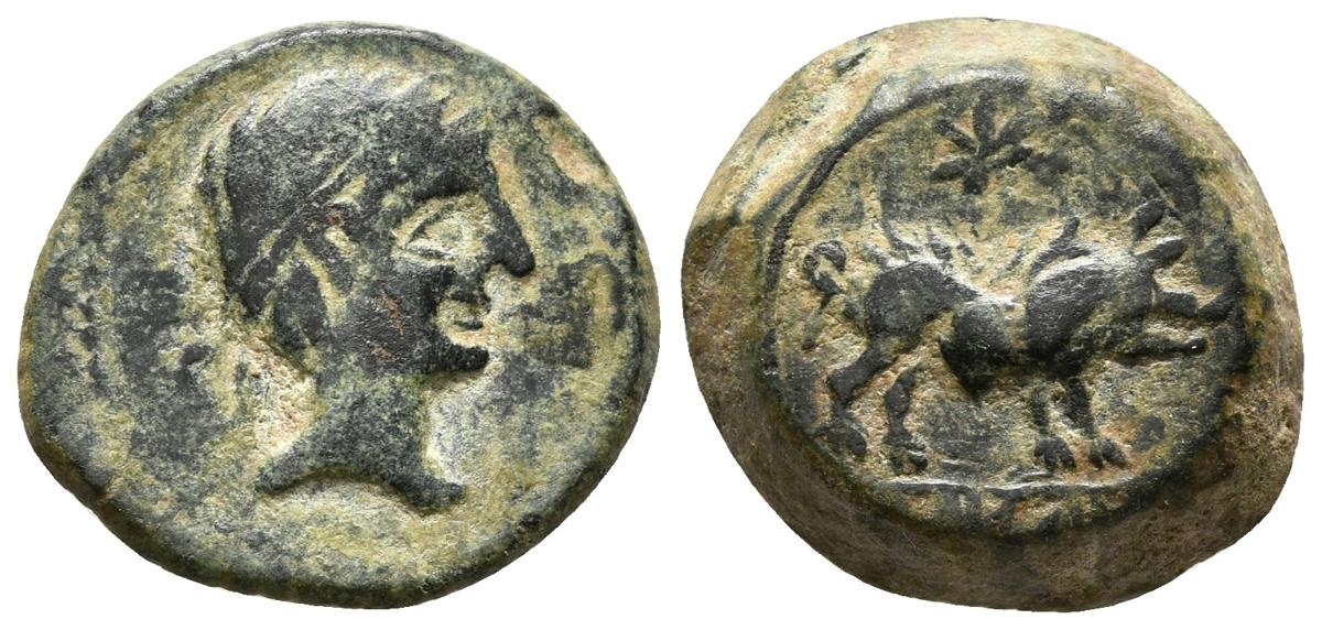 CASTULO. Cuadrante. 180 a.C. Cazlona (Jaén) A/ Cabeza masculina a derecha. R/ Jabalí a derecha, encima estrella, debajo (CaSTeLE). FAB-735. Ae. 5,10g. MBC.