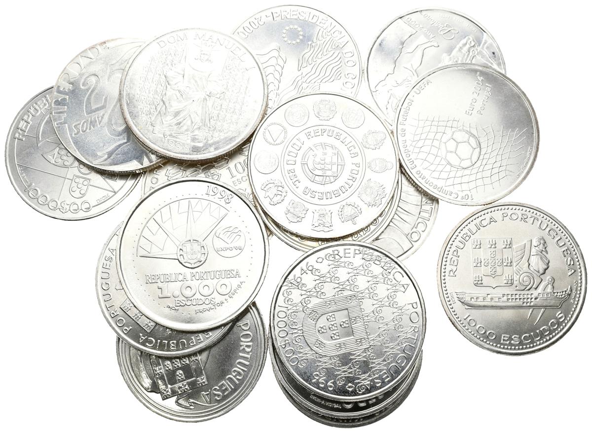 PORTUGAL. Lote compuesto por 18 monedas de 1000 Escudos: 1992 Encontro dois mondos; 1994 Tratado de Tordesilhas; 1995 Cent. Mort Joao II; 1996 Fragata D. Fernando e Gloria; 1996 Nossa Senhora da Conceicao; 1997 Cent. das expedicoes oceanograficas; 1997 Danse du Pauliteiros; 1997 II Cent. de credit public; 1998 Ano internacional dos Oceanos; 1998 Santa casa misericordia; 1998 D. Manuel I; 1998 Ligua dos combatentes; 1999 XXV Aniversario do 25 abril; 1999 Atlántico; 2000 President du conseil; 2000 Cavalo Lusitano; 2001 D. Joao de Castro y 2001 Futbol 2004 Portugal. Ar. SC. A EXAMINAR.