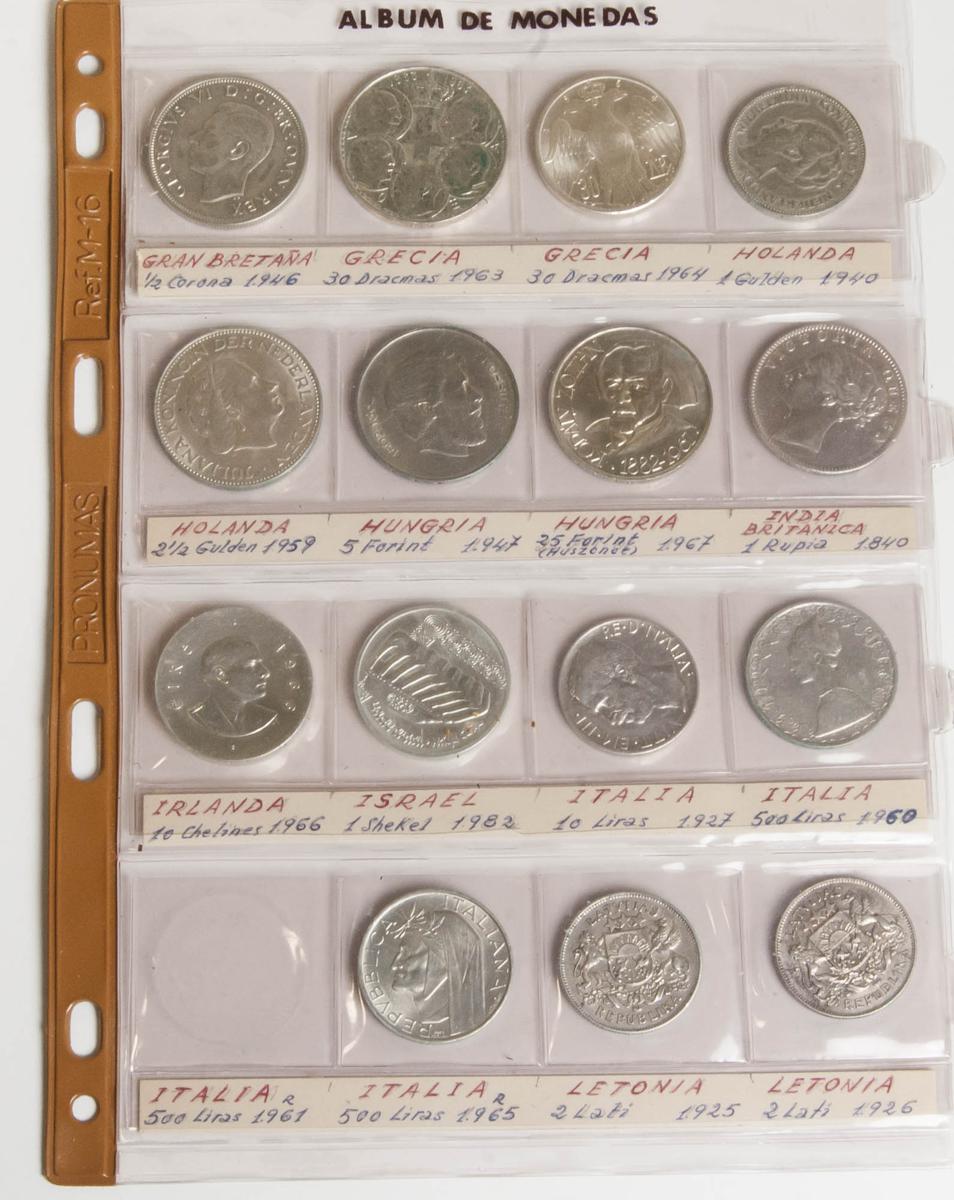 MUNDIAL. Lote compuesto por 34 monedas de plata de los siguientes paÍses Panamá, Siria, Suecia, Gran Bretaña, Grecia, Holanda, HungrÍa, India Británica, Irlanda, Israel, Italia, Letonia, Liberia, Lituania, Marruecos, México, Monaco, Mozambique, Nepal y Nueva Zelanda. Ar. BC+/SC. A EXAMINAR.