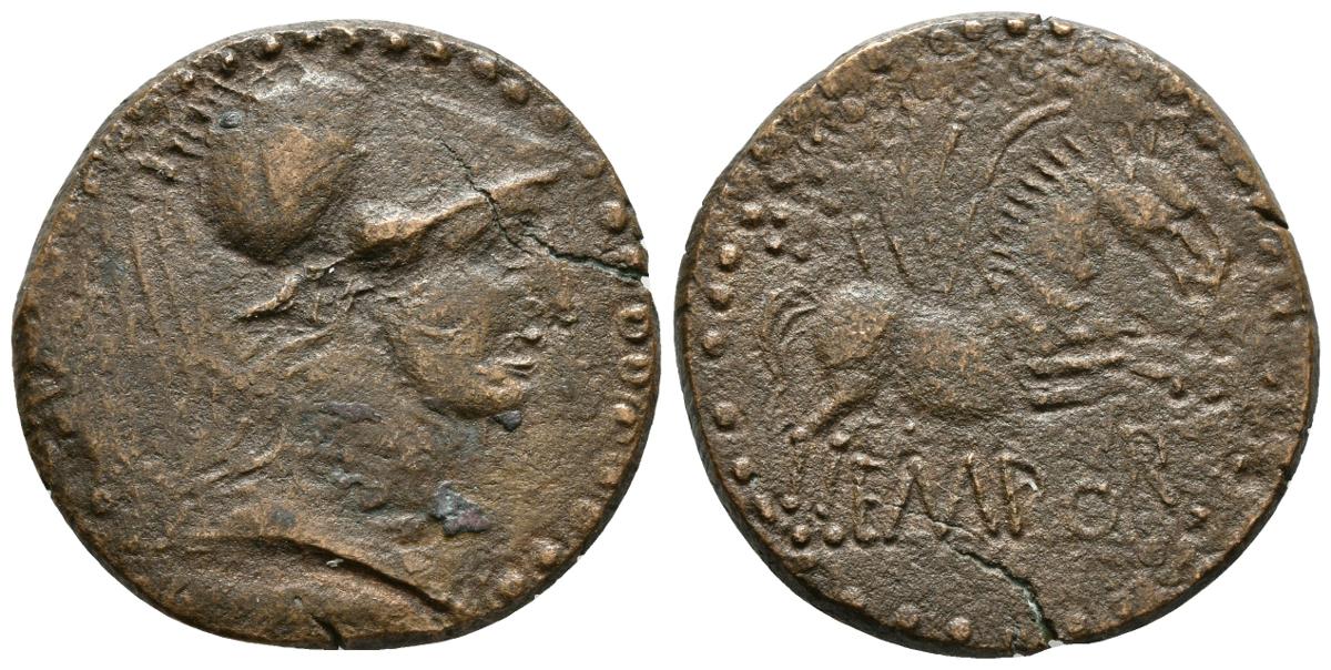 EMPORITON. As. Sant Martí d'Empúries (Gerona). 130-90 a.C. A/ Cabeza de Palas a derecha. R/ Pegaso a derecha, encima láurea, debajo EMPOR. FAB-1247. Ae. 8,98g. MBC-.