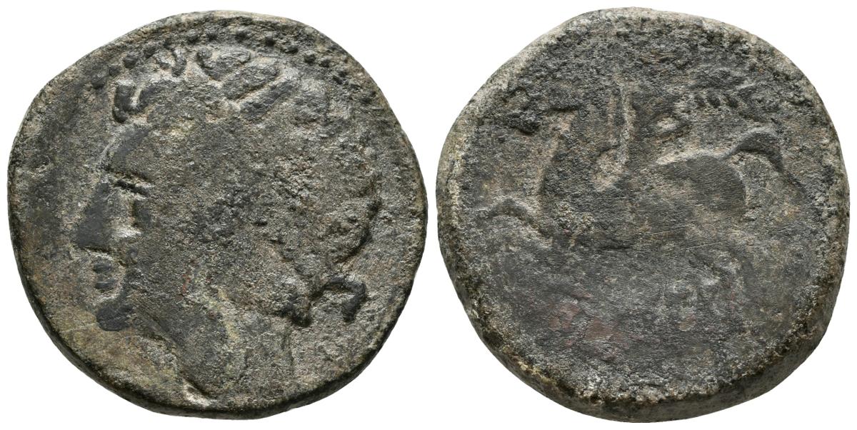 ILITURGI. As. 50 a.C. Mengíbar (Jaén). A/ Cabeza masculina con diadema a izquierda. R/ Jinete con palma a izquierda, debajo (ILVTVRGI) curva. FAB-1559. Ae. 13,47g. MBC-.
