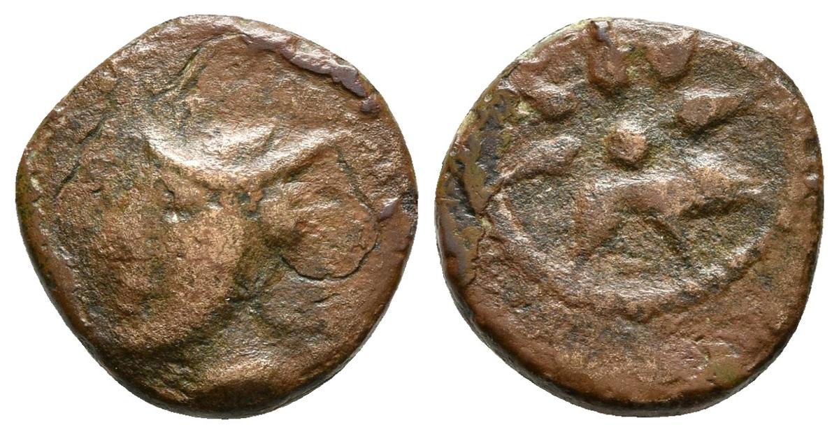 MALACA. Sextante. 200-20 a.C. Málaga. A/ Cabeza con gorro egipcio, moño y coleta a izquierda. R/ Estrella de ocho rayos. FAB-1724. Ae. 1,70g. MBC-.