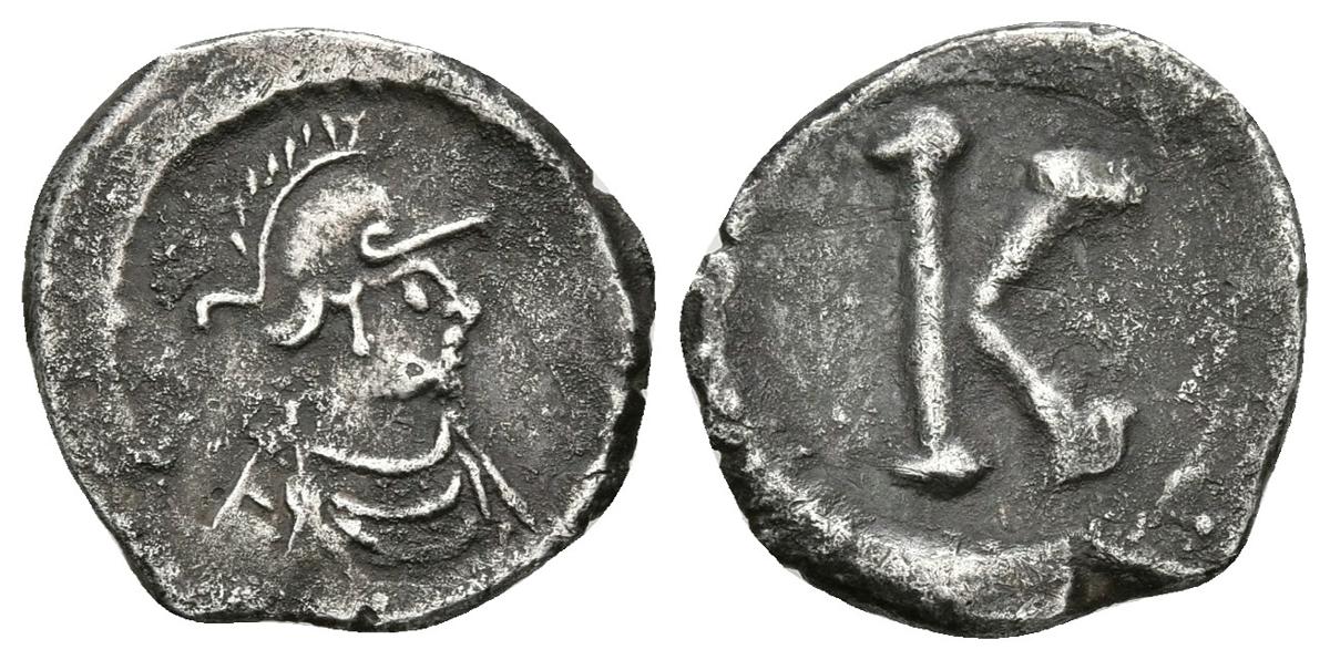 ANONIMO. 1/3 de Siliqua. 530 d.C. Constatinopla. Tiempos de Justiniano I. A/ Busto de Constantinopolis a derecha. R/ Letra K. Bendall (Anonymous) Type 8; Vagi 3051. Ar. 1,07g. MBC+.