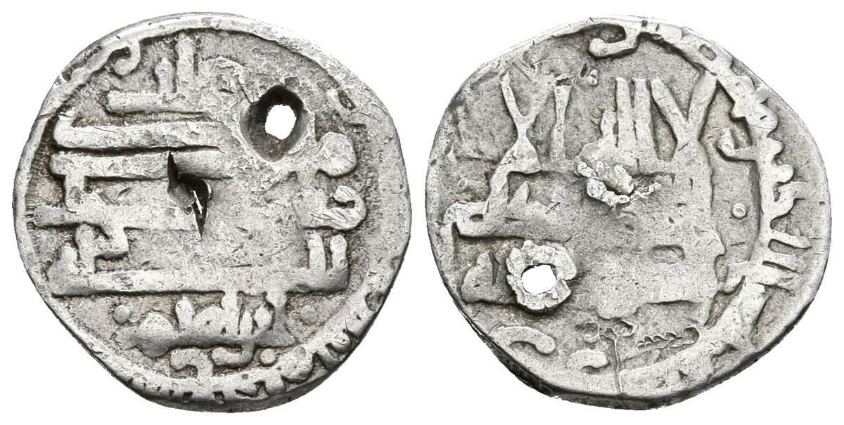 AGHLABIES. Ibrahim II Ibn Ahmad. 1/2 Dirham. 261-289H. ¿Al-Abbasiya?. Ar. Album 449. 1,40g. Perforación. MBC-. Rara.