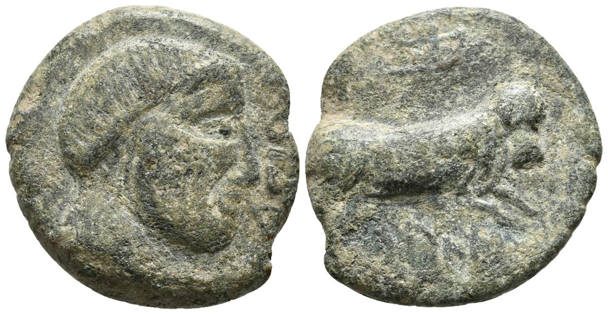 ASIDO. As. 50 a.C. Medina Sidonia (Cádiz). A/ Cabeza masculina a derecha, delante leyenda externa ASIDO. R/ Toro a derecha, encima marca, debajo inscripción libio-fenicia 'SDN. FAB-153. Ae. 14,46g. BC+. Rara.