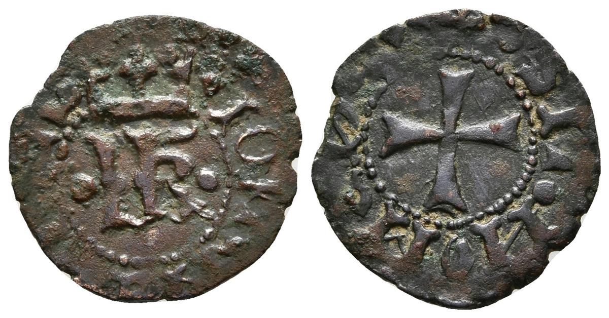 JUAN Y CATALINA. Cornado. (1483-1512). Navarra. Con gráfila de puntos interna en ambas caras. Cru.V.S. 293. Ae. 0,83g. MBC. Escasa.