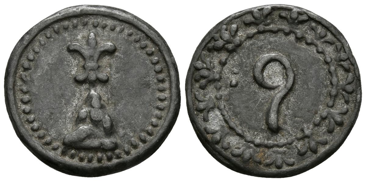 MONTUIRI. Plomo. Mallorca. A/ Colina, encima lirio. R/ Báculo con orla de flores. Cru.VS 2414. Pb. 3,29g. MBC+. Escaso.