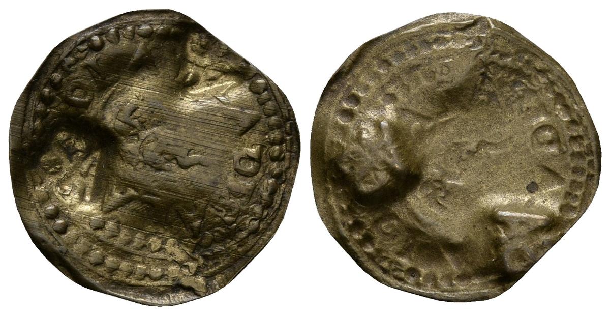 SALAS DE PALLARS. Senyal incusa. Dos contramarcas de SA. Cru.C.G. 3837a var; Cru.L. 2082var. Latón. 0,22g. MBC+.