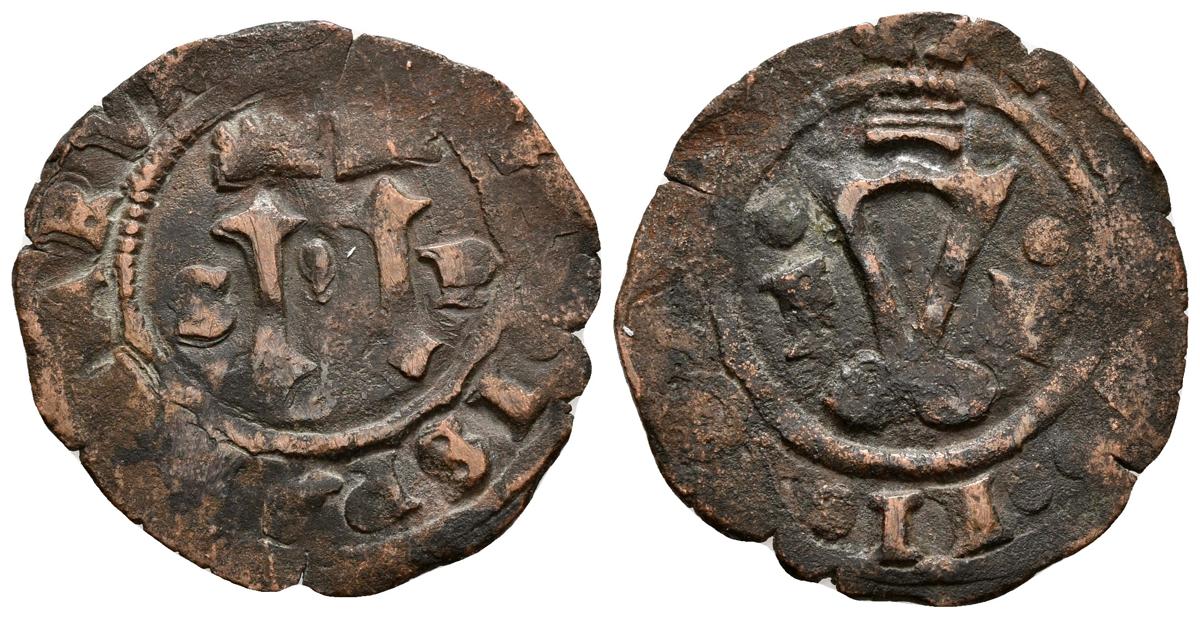 JUANA Y CARLOS. 4 Maravedís. (1504-1555). Santo Domingo. A/ F-IIII. R/ S-P. Cal-208. Ae. 2,92g. MBC-.