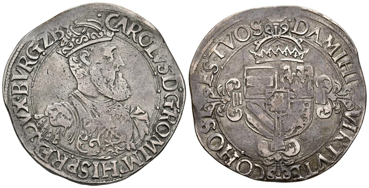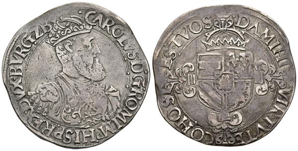 CARLOS I. 1 Florín Carolus de plata. S/D. Amberes. Vti. 565; Van Gelder &, Hoc 187-1. Ar. 22,70g. Pátina. MBC+. Muy rara.
