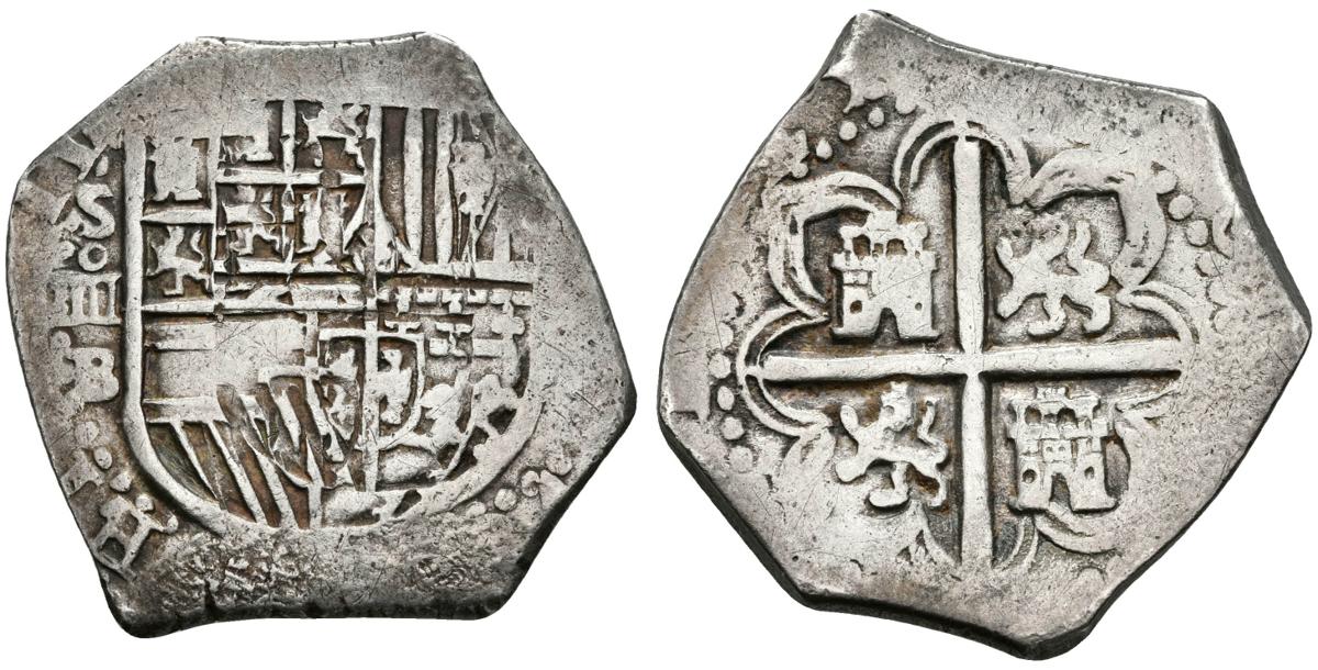 FELIPE II. 4 Reales. S/D. Sevilla B. Cal-401. Ar. 13,51g. MBC-. Escasa.