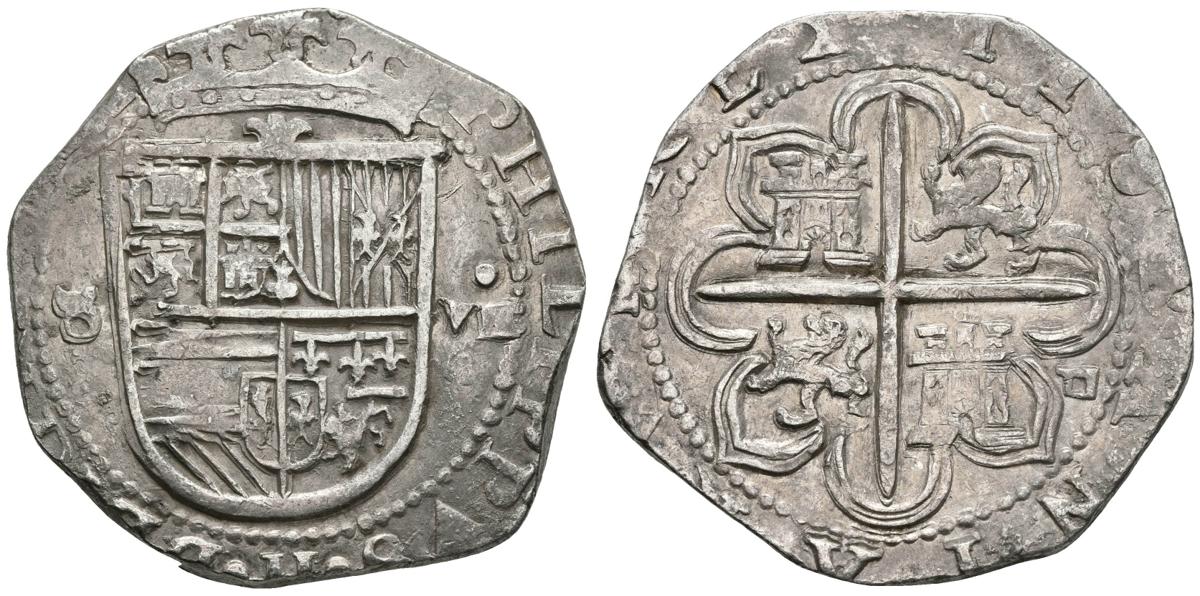 FELIPE II. 8 Reales. S/D. Sevilla. Cal-235. Ar. 27,28g. MBC+. Ex. Colección Lepanto 27-04-1999 Nº149.
