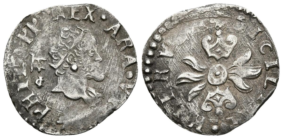 FELIPE II. 1/2 Carlino. S/D. Nápoles IAF/CI. Vti-302; Mir 185.1; Pannuti-Riccio 45a. Ar. 1,38g. MBC. Escasa.