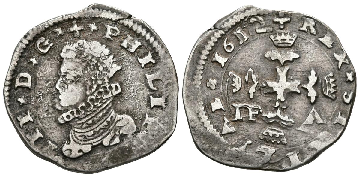 FELIPE III. 3 Taris. 1612. Messina DF-A. Vti. 113; MIR. 346.5. Ar. 7,73g. MBC+.