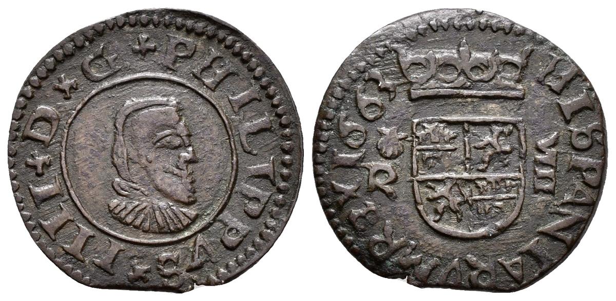 FELIPE IV. 8 Maravedís. 1663. Coruña R. Cal-1305; J.S. M-156. Ae. 2,12g. MBC.