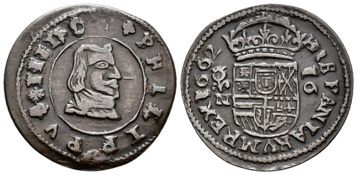 FELIPE IV. 16 Maravedís. 1662. Granada N. Cal-1351; J.S. M 231. Ae. 4,90g. MBC+.