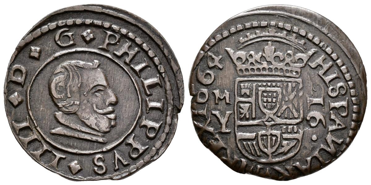 FELIPE IV. 16 Maravedís. 1664. Madrid Y. N invertida en reverso. Cal-1406; J.S. M-411. Ae. 5,43g. MBC+.