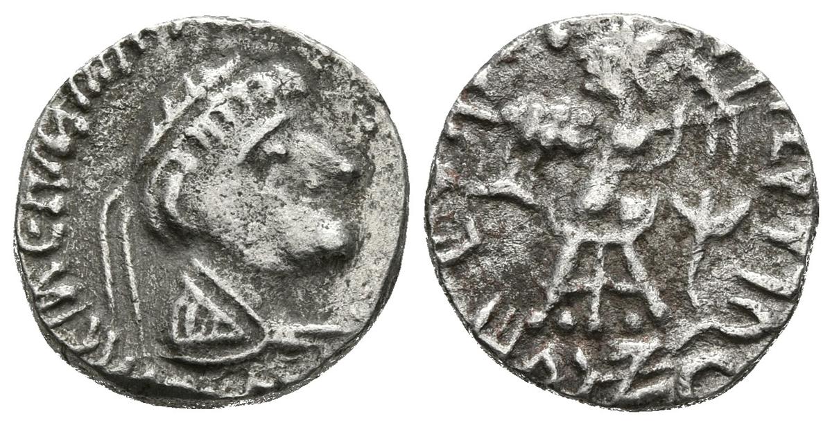 BAKTRIA, Indo-Grecia. Strato II. Dracma. 25-15 a.C .Jammu. A/ Busto diademado y drapeado a derecha. R/ Pallas Athena a izquierda. Mitch.2132ff. Ar. 2,39g. MBC.
