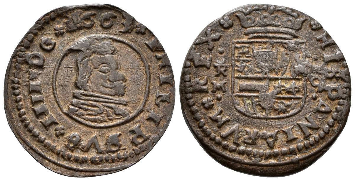 FELIPE IV. 16 Maravedís. 1663. Trujillo M. Cal-1633; J.S. M-704. Ae. 4,54g. MBC+/MBC.
