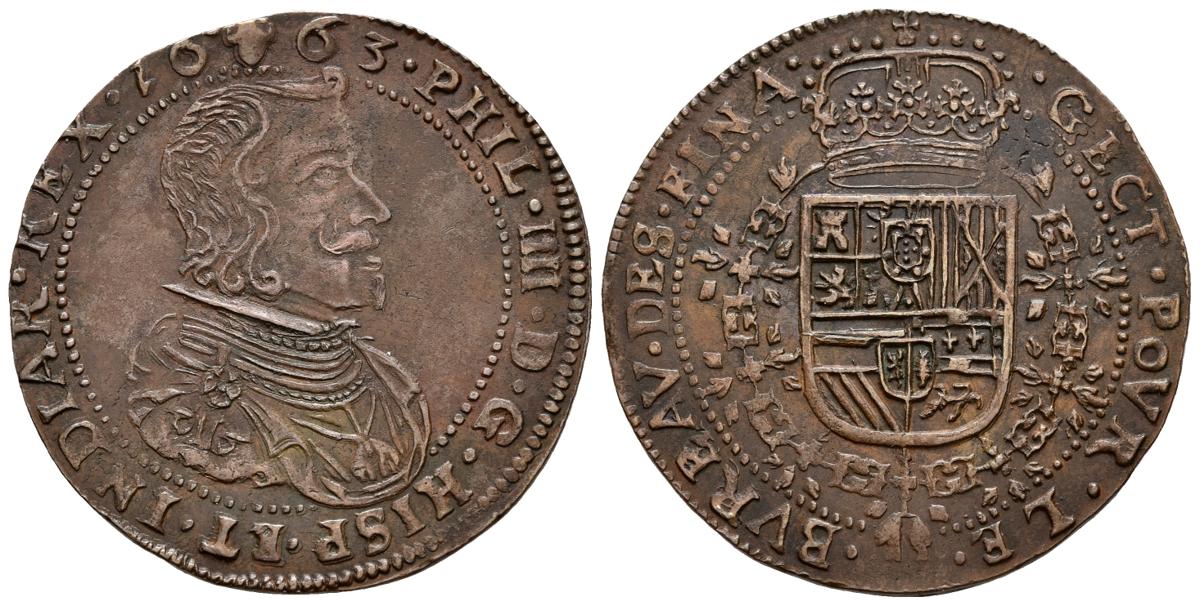 FELIPE IV. Jetón. 1663. Bruselas. Oficina de Finanzas. Dugniole 4192; V.Q. 13882. Ae. 6,01g. EBC-. Ex. Aureo 26-01-2005 Nº546.